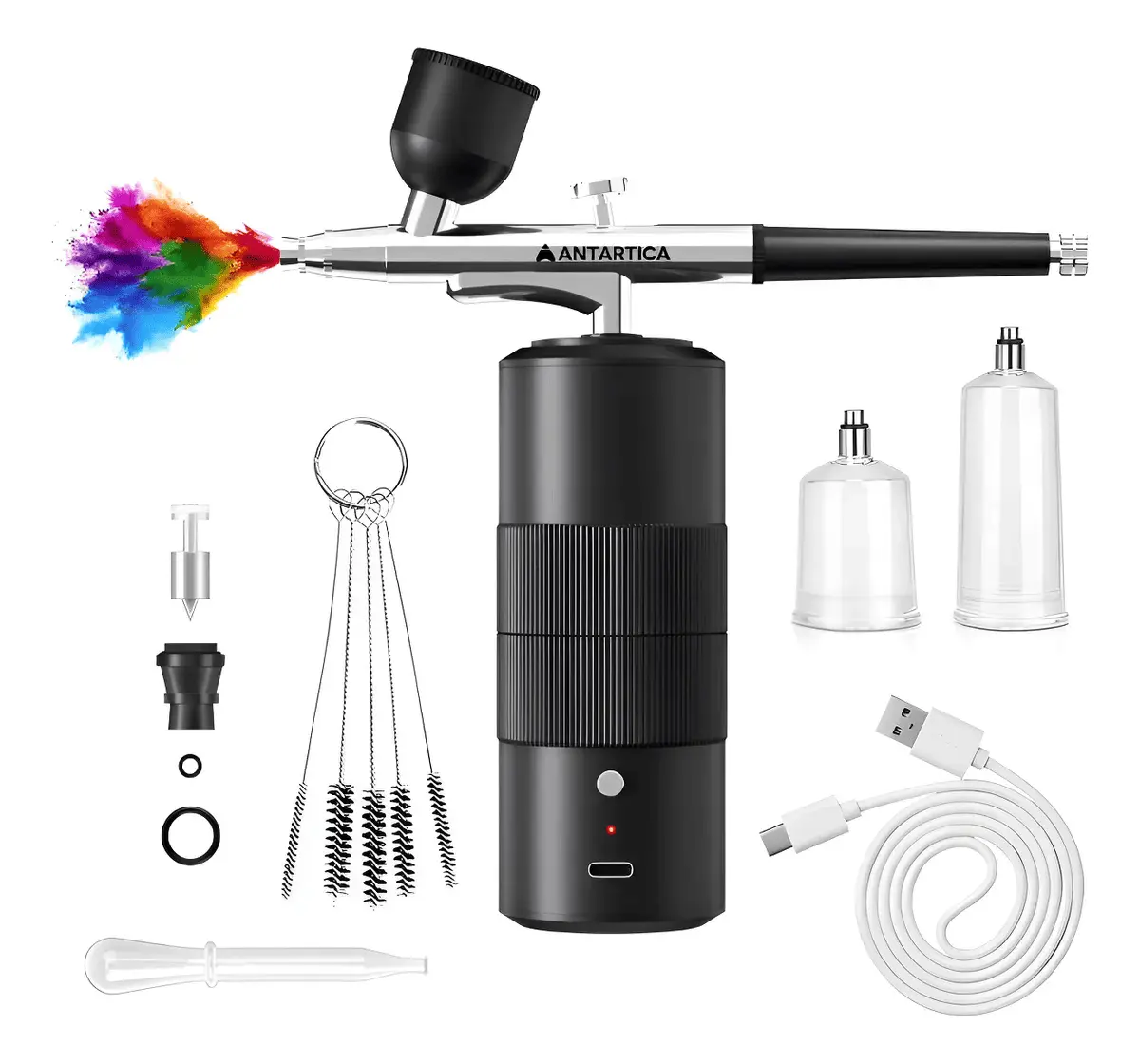 Este kit de aerógrafo portátil recargable USB es la herramienta ideal para barbería, tatuajes temporales, maquillaje, arte y decoración. Su diseño compacto y de alta precisión permite realizar trabajos detallados con un flujo de aire uniforme y controlado, adaptándose a múltiples usos con total facilidad.
