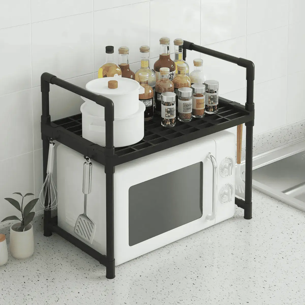 Organizador de cocina diseñado para colocar el microondas y aprovechar el espacio superior como estante adicional. Ideal para mantener tu cocina ordenada y funcional, este organizador permite tener utensilios, recipientes o accesorios siempre a mano sin ocupar espacio extra.